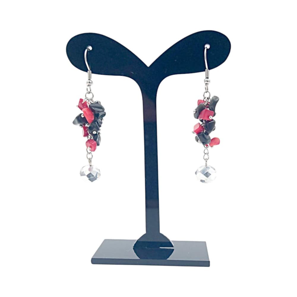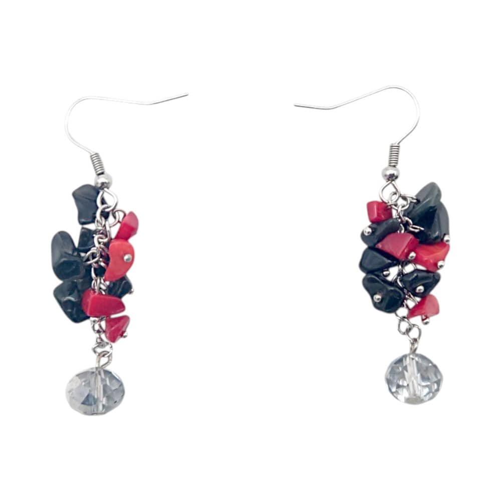 Ръчно изработени обици от Обсидиан, Корал и кристали.