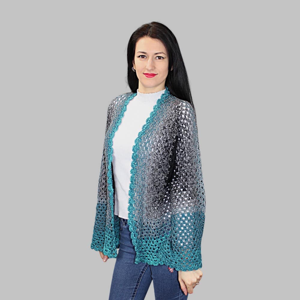 Ръчно плетена на една кука дамска жилетка. Ефирна и много лека.