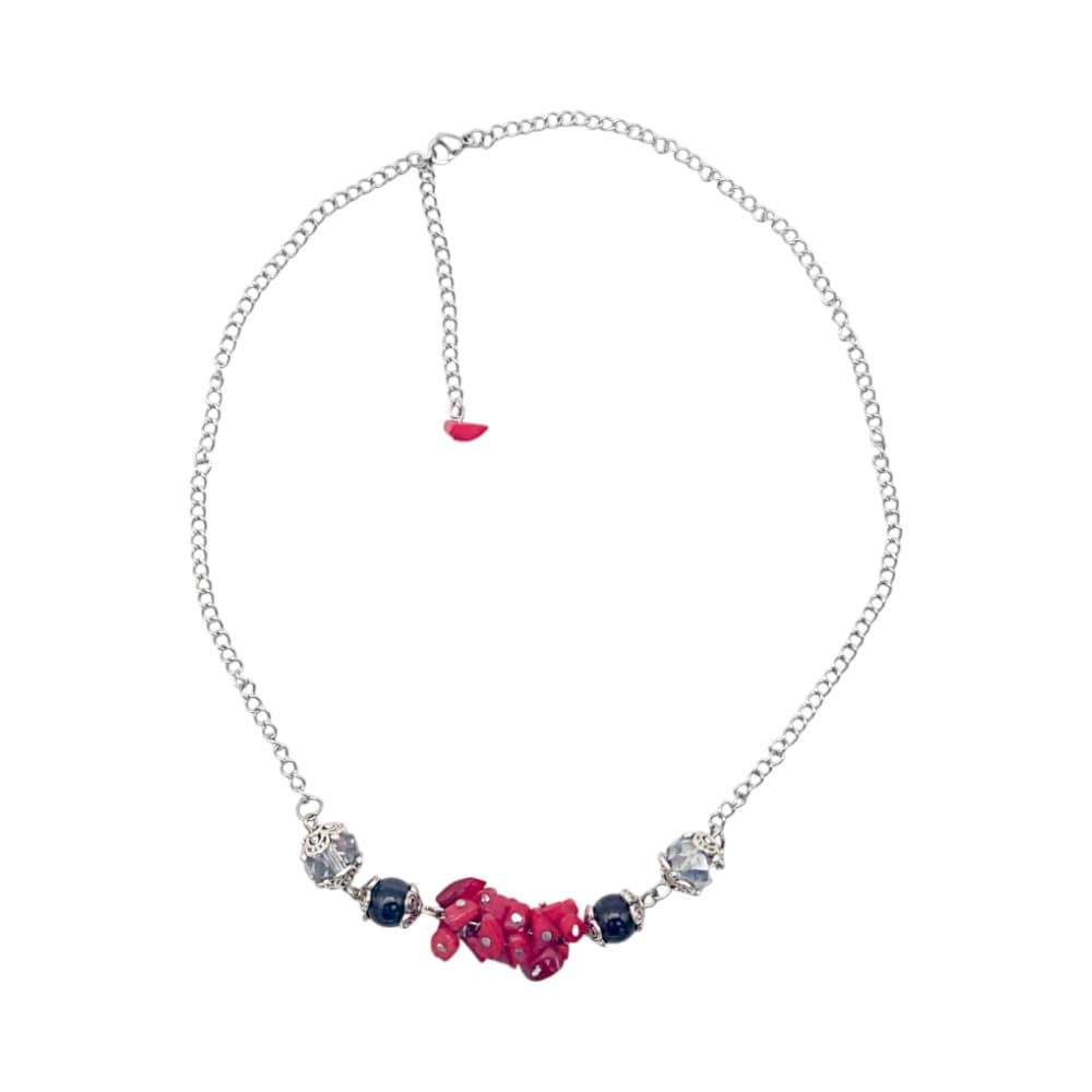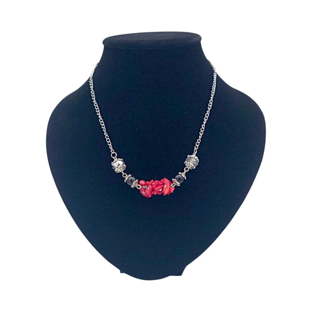 Ръчно изработено колие от естествени камъни: Обсидиан, Корал и кристали.