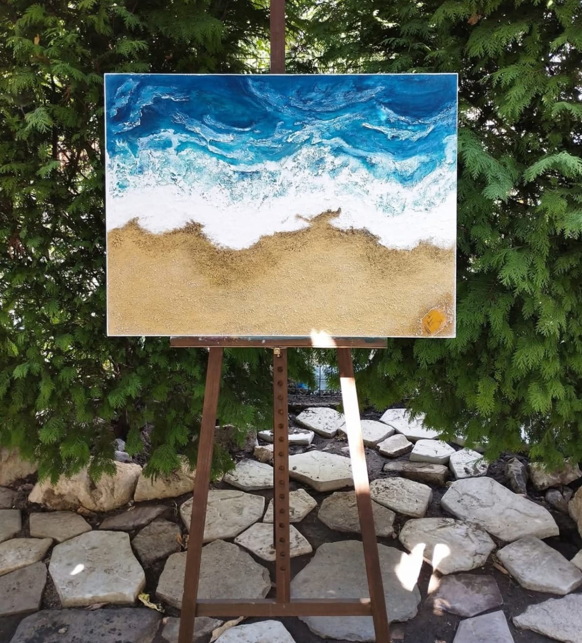 Абстрактна картина с релеф – акрилни и тебеширени бои, пасти и вакси. Размер 60/80. Подходящ подарък за малки и големи любители на морето. Единствена бройка