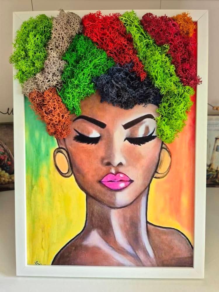 Картина със скандинавски мъх „Екзотична красота“ / Арт пано „Афро стил“ с естествен мъх.