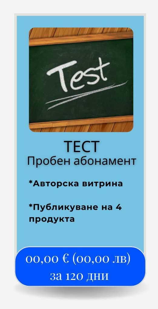 Изберете безплатен абонамент “ТЕСТ” и изпробвайте платформата 120 дни без никакъв риск.