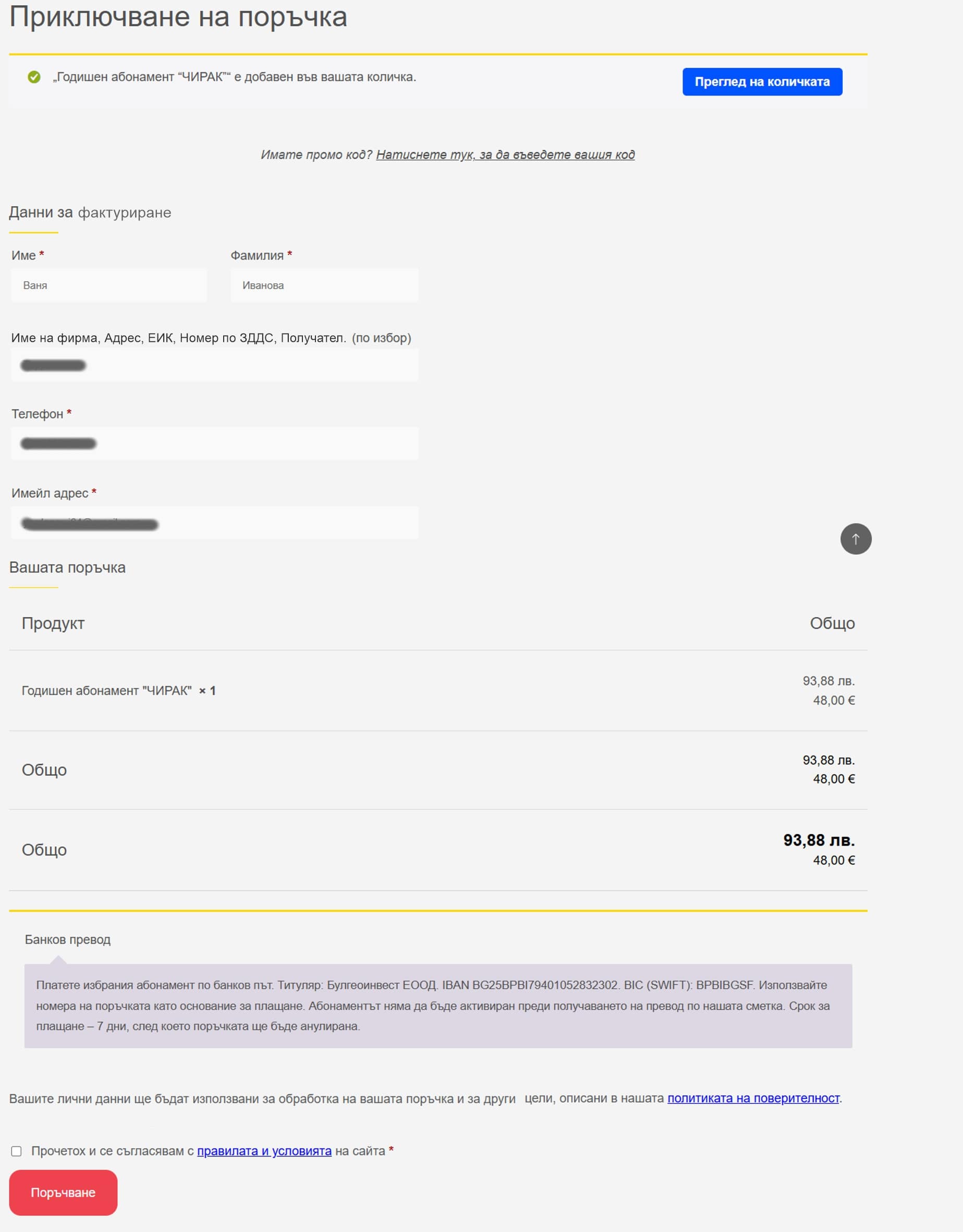 3.1. Поръчване на абонамент