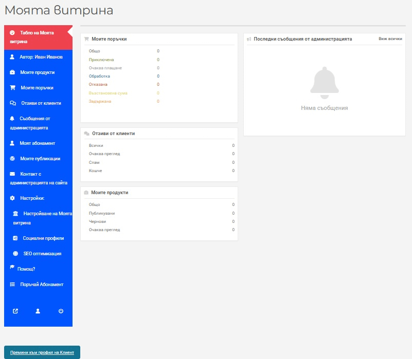 2.1. Административен панел на Моята витрина